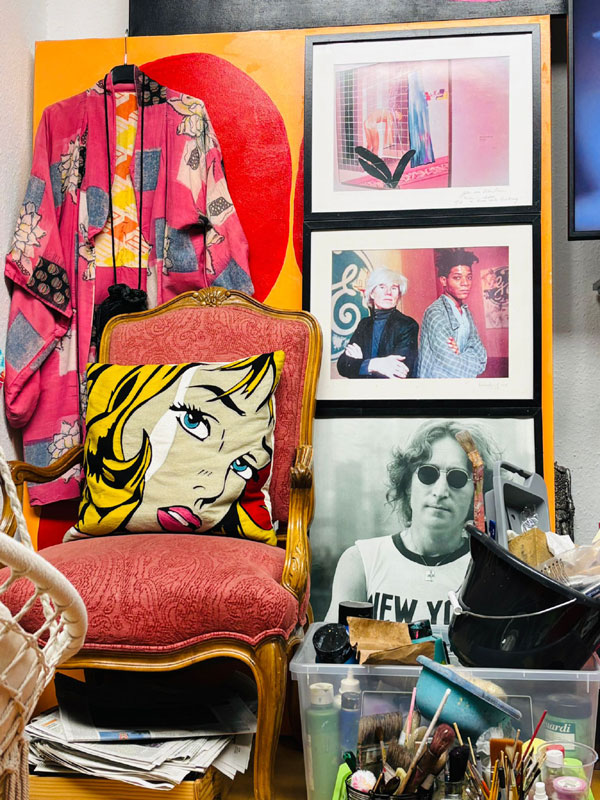 auf bemalten Farbkissen Ihre melancholischen Fotografien.